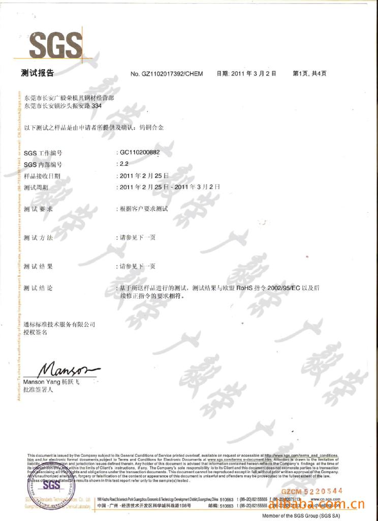 出廠隨貨附帶材質(zhì)證明及SGS報(bào)告 (請(qǐng)登錄http://rsts.cn.sgs.com/chn/cheres_cn.asp SGS報(bào)告查詢真?zhèn)危?/strong>
