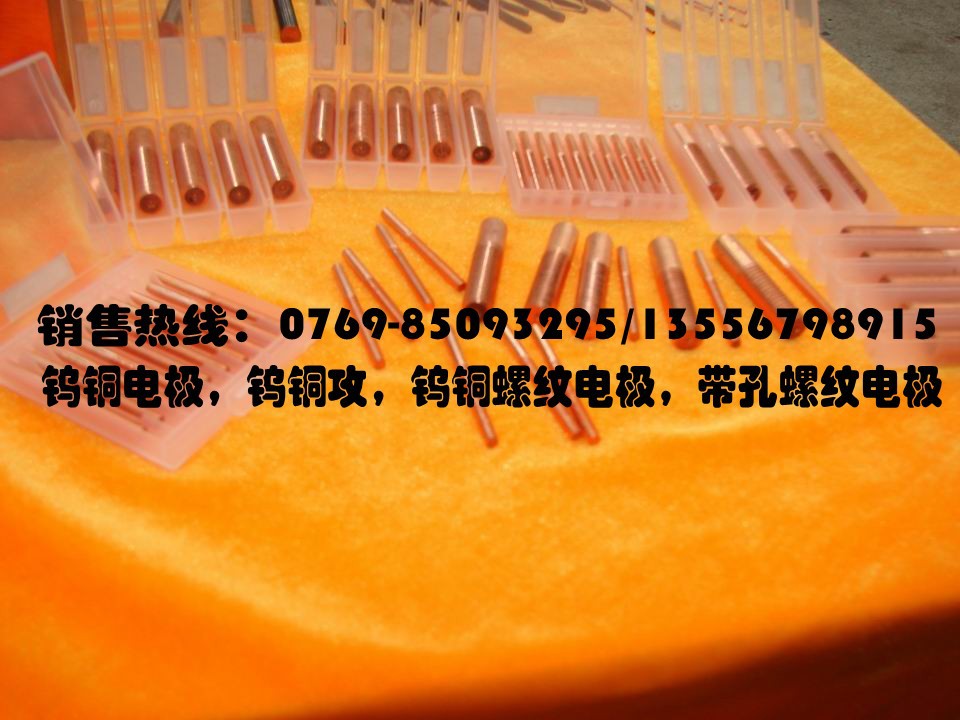 另外我司還銷售鎢銅電極,鎢銅攻,鎢銅螺紋電極,鎢銅攻牙螺紋電極,帶孔螺紋電極,紅銅螺紋電極, 紅銅帶孔螺紋電極,紫銅螺紋電極,鎢銅放電電極,點(diǎn)焊接電極加工,歡迎來電咨詢,謝謝!