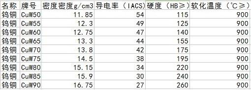 廣毅榮鎢銅合金現(xiàn)貨規(guī)格: